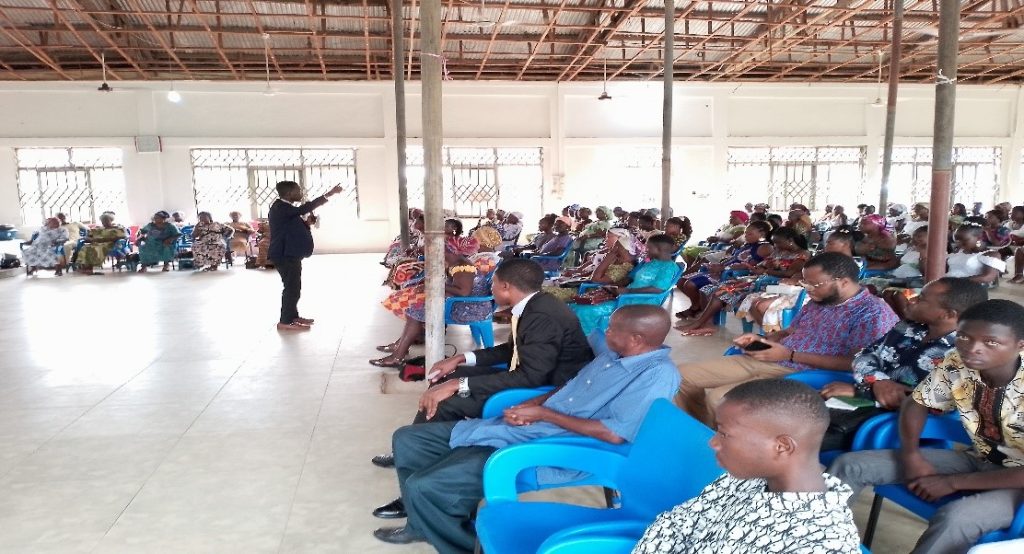 Mr Charles Gyimah reminding the congregation of church of Pentecost Central, Asamanya on during the constitution week on the need to protect the constitution of Ghana.